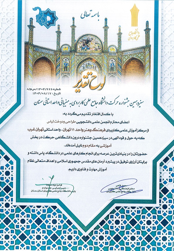 🥈مقام دوم بخش فعالیت آموزشی: انجمن علمی لباس