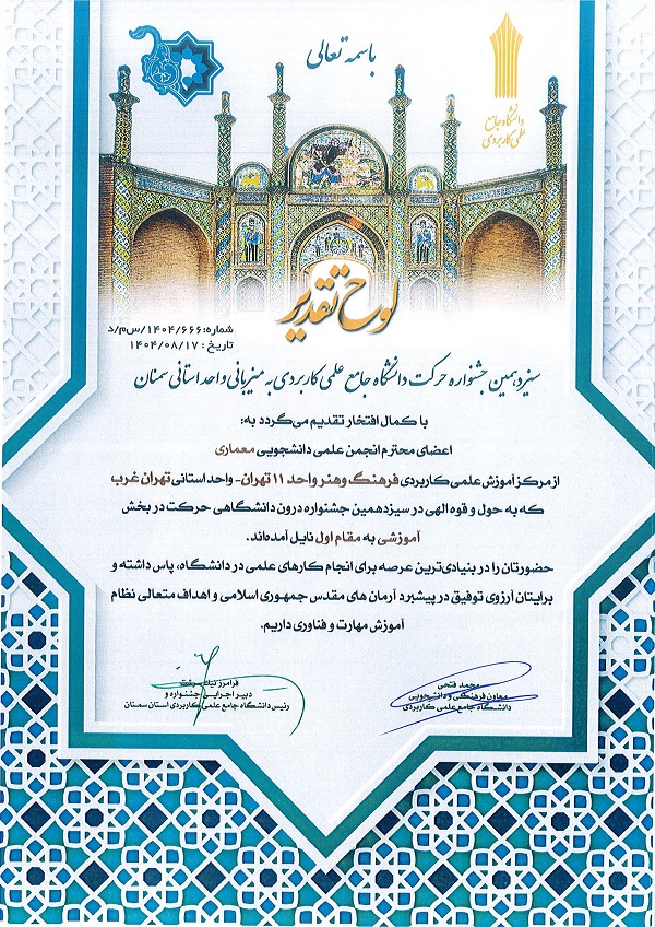 🥇 مقام اول بخش فعالیت آموزشی: انجمن علمی معماری