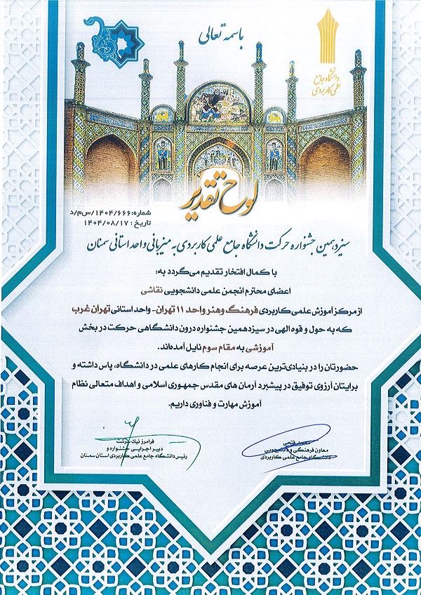 🥉 مقام سوم بخش فعالیت آموزشی: انجمن علمی نقاشی
